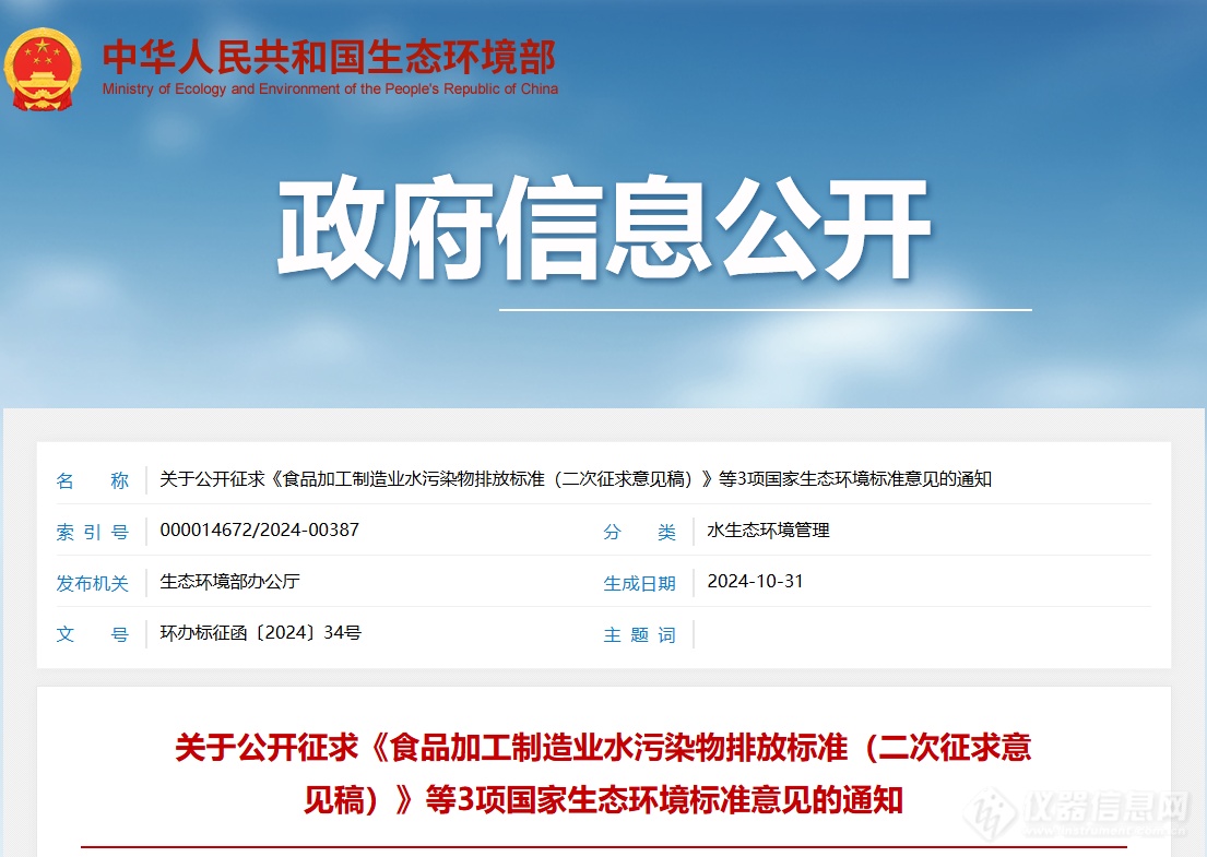 《食品加工制造業(yè)水污染物排放標(biāo)準(zhǔn)(二次征求意見稿)》